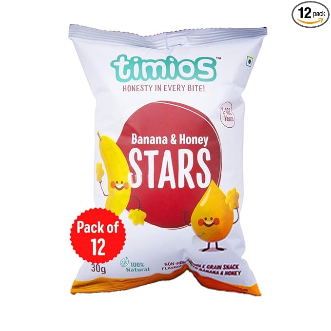 Timios Banana And Honey Stars Healthy Snacks For Kids Natural Energy Food Product For Toddlers Party Snack For School Children 2 Years Pack Of 12 Amazon In Grocery Gourmet Foods